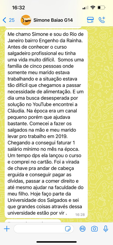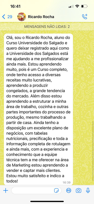 Nesse curso você terá acesso as melhores e mais lucrativas receitas de salgados, doces, pão de queijo e nhoque.